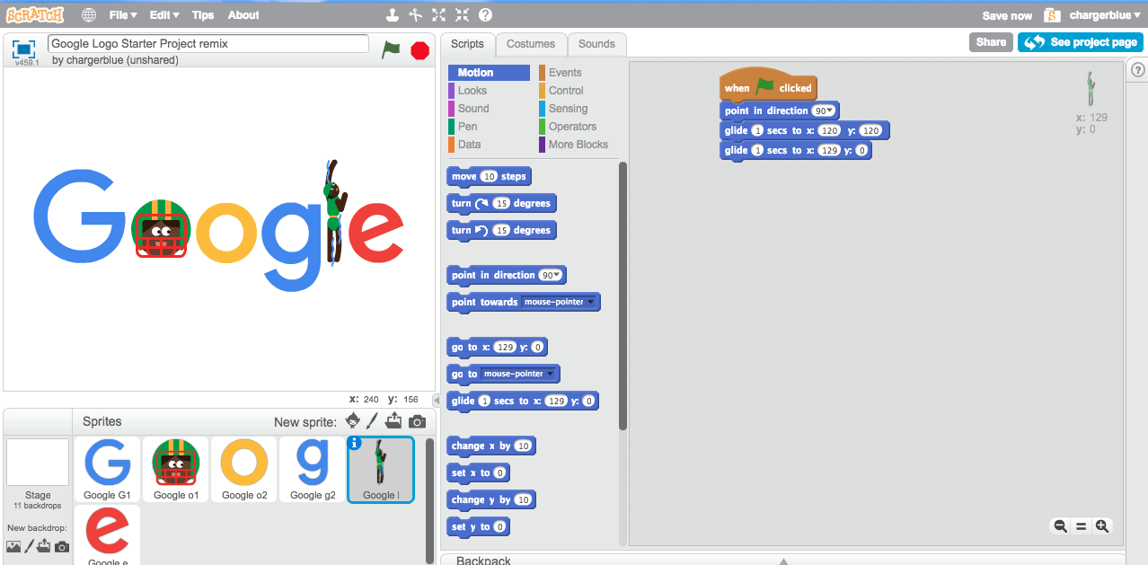 Google is encouraging those inspired by Mondays doodle to try out the Hour of Code logo project. Use your creativity and imagination to bring the Google logo to life using code. Except as otherwise noted the contents on this site are licensed under a Creative Commons Attribution-ShareAlike 40.